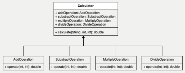 calculate 메서드에서는 더 이상 연산자 타입을 받아 구분할 필요 없이 주입 받은 연산 클래스의 operate 메서드를 통해 바로 연산을 수행