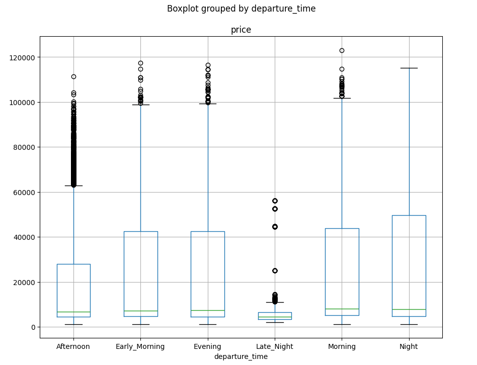 출발 시간별 가격 정보의 분포를 확인해보면