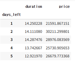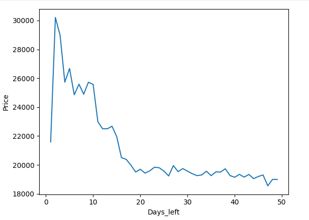 - 항공권 가격 예측 데이터에서 출발까지 남은 일자에 따라 항공권 가격이 어떻게 변화하는지 시각화를 통해 확인할 수 있다